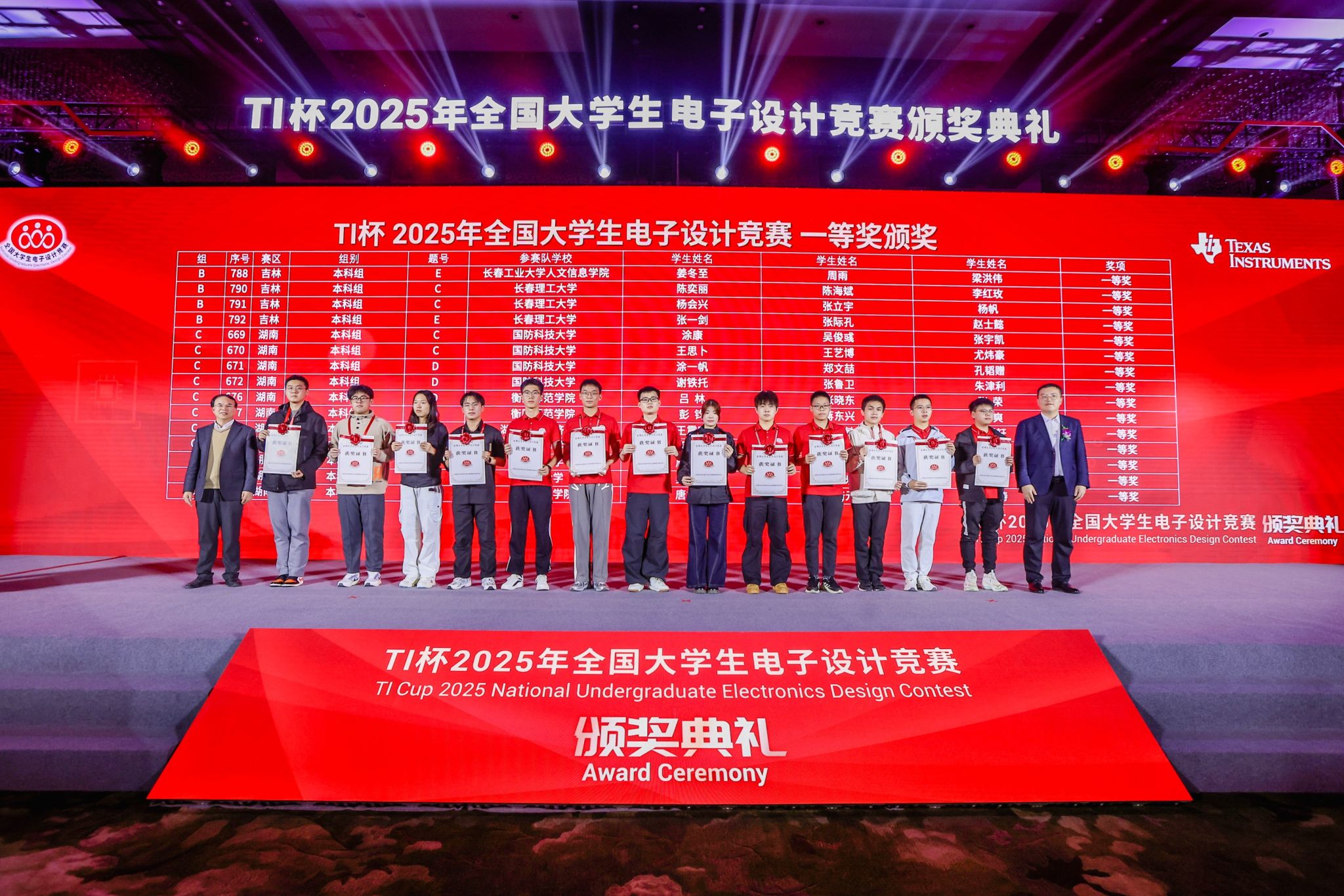 10月18日,2025年全国大学生电子设计竞赛(TI杯)颁奖大会在北京举行。我校教务处处长姜德龙,指导教师张慧颖,获奖学生代表邹文博,一同受邀参会并登台领奖。