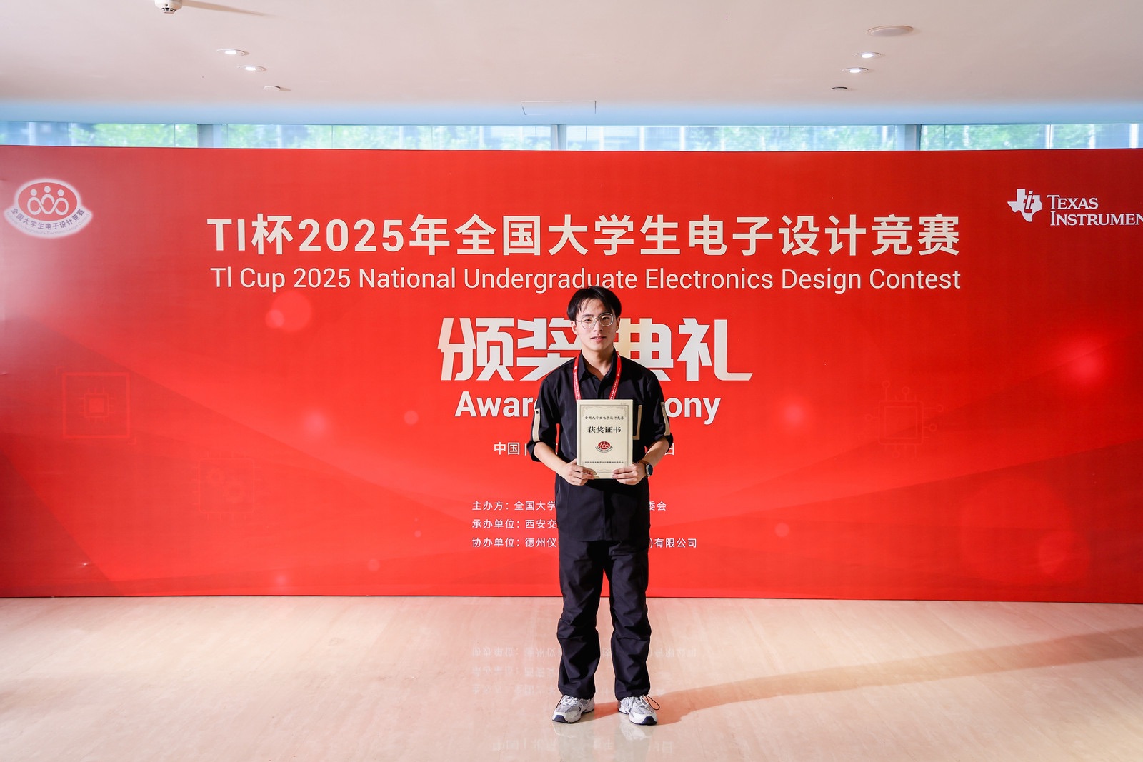 颁奖大会上,中国科学院院士、全国大学生电子设计竞赛专家组组长管晓宏为获奖学生颁发获奖证书。会后,邹文博同学表示:“这份荣誉不仅属于团队,更属于学校。未来我将继续扎根实验室,把竞赛经验转化为创新能力,为学校发展建设贡献青春力量。”